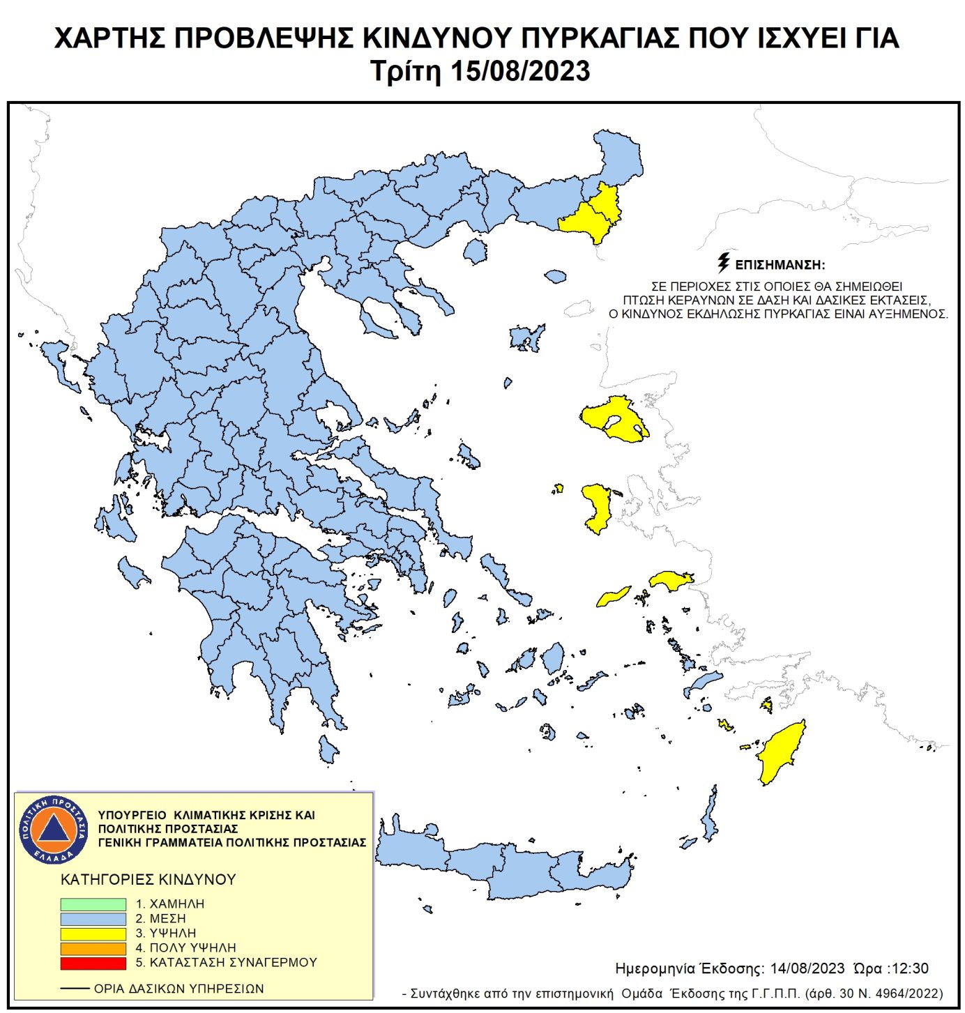 Ημερήσιος Χάρτης Πρόβλεψης Κινδύνου Πυρκαγιάς για 15/08/2023