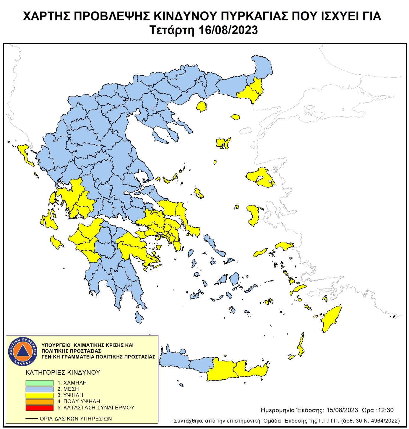 Ημερήσιος Χάρτης Πρόβλεψης Κινδύνου Πυρκαγιάς για 16/08/2023