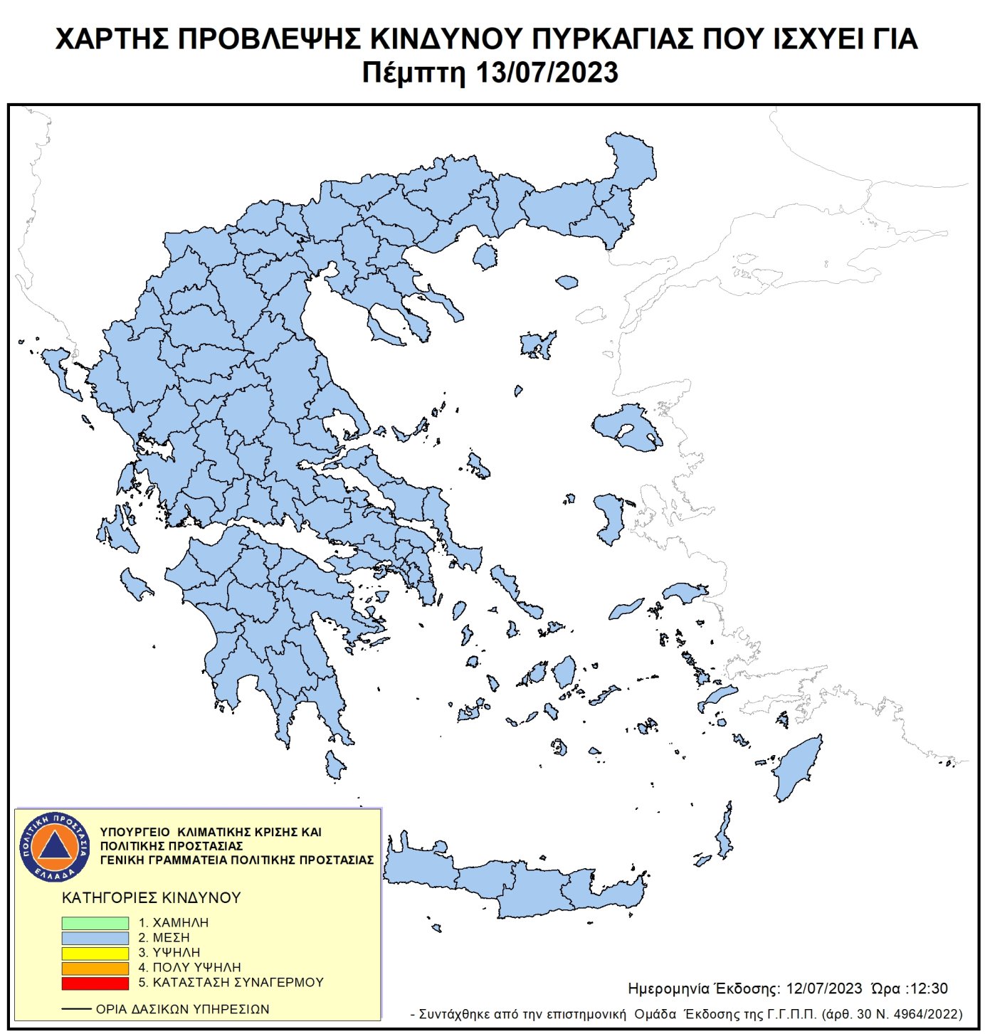 Ημερήσιος Χάρτης Πρόβλεψης Κινδύνου Πυρκαγιάς για 13/07/2023