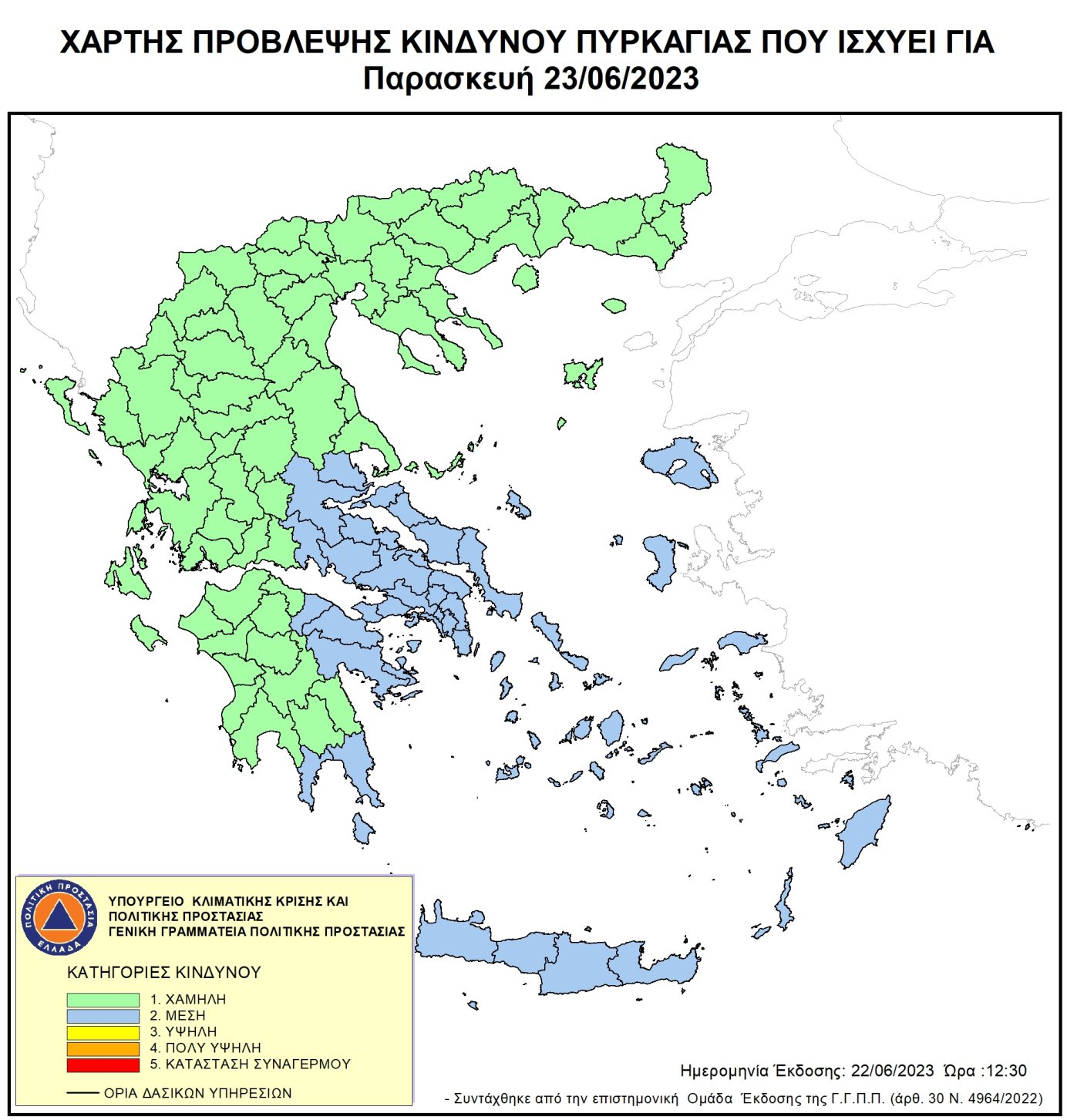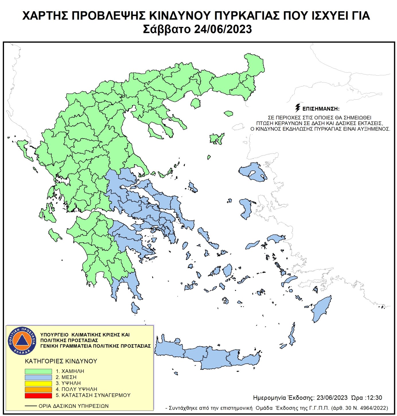 Ημερήσιος Χάρτης Πρόβλεψης Κινδύνου Πυρκαγιάς για 23/06/2023