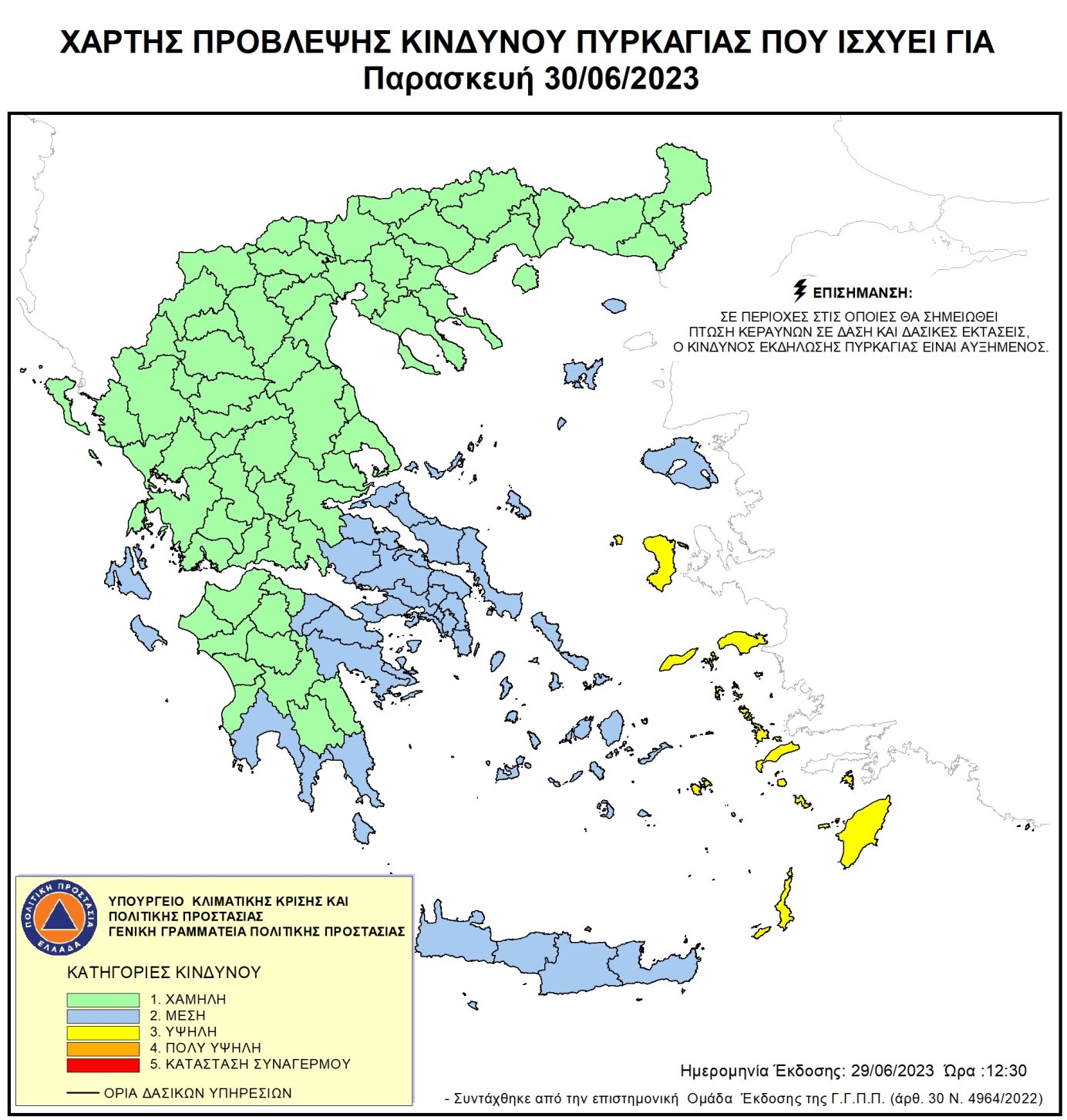 Ημερήσιος Χάρτης Πρόβλεψης Κινδύνου Πυρκαγιάς για 30/06/2023