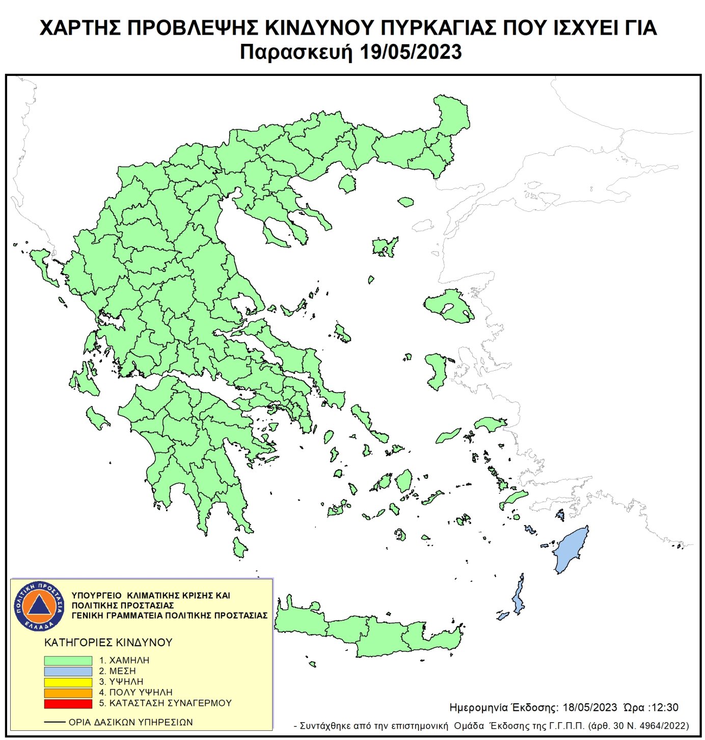 Ημερήσιος Χάρτης Πρόβλεψης Κινδύνου Πυρκαγιάς για 19/05/2023