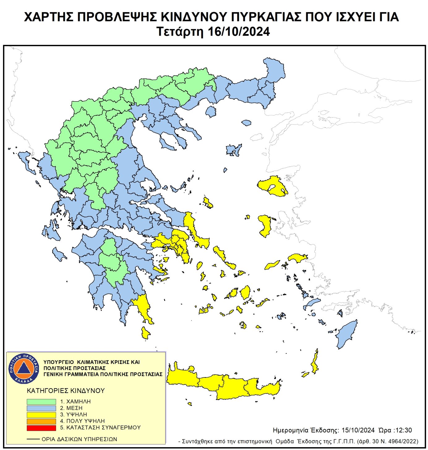 Ημερήσιος Χάρτης Πρόβλεψης Κινδύνου Πυρκαγιάς για 16/10/2024