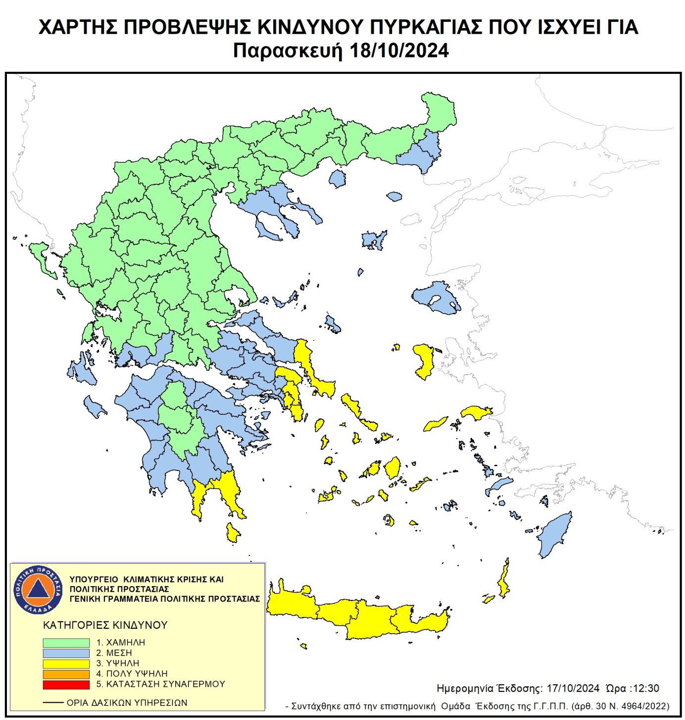 Ημερήσιος Χάρτης Πρόβλεψης Κινδύνου Πυρκαγιάς για 18/10/2024