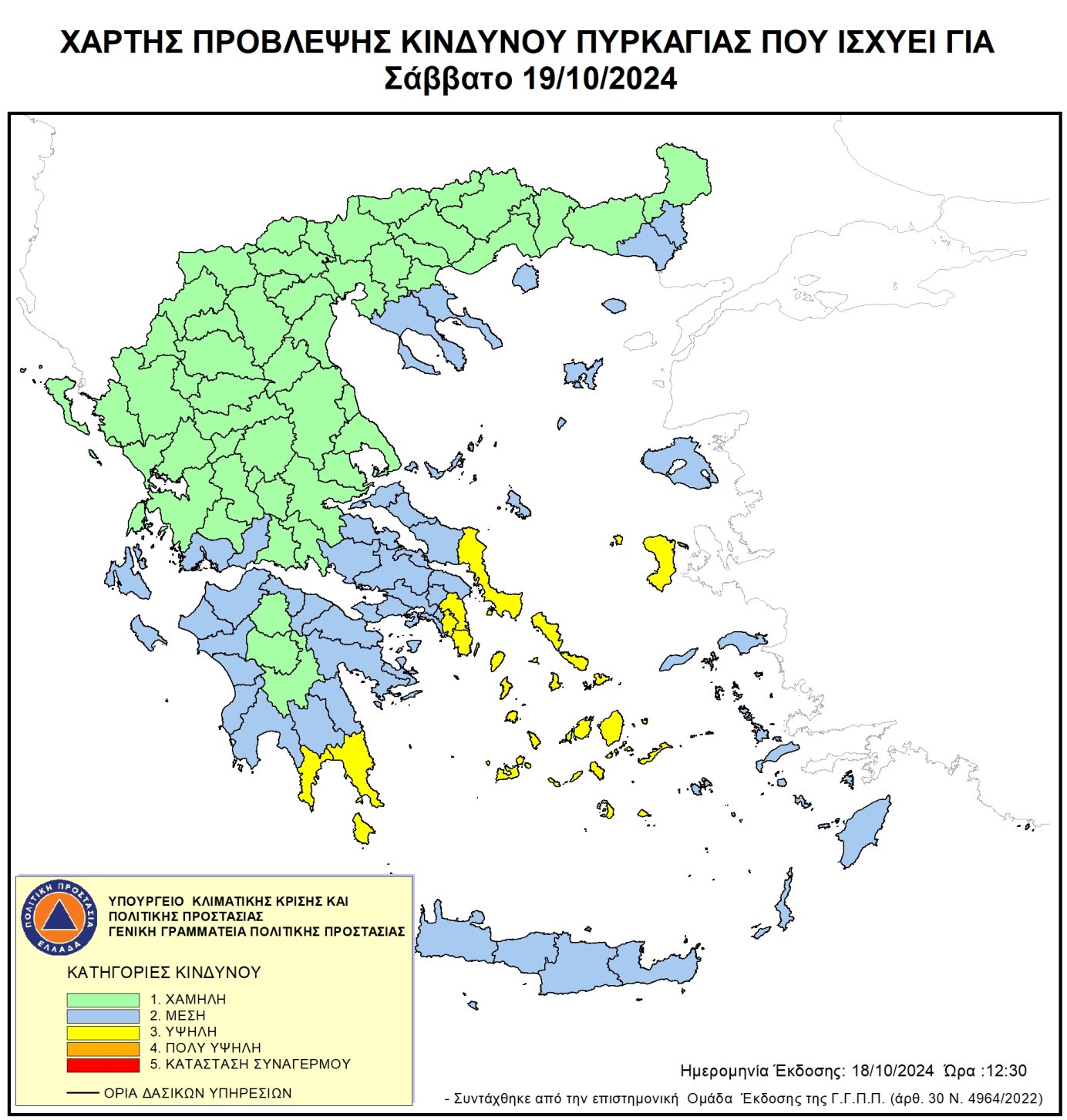 Ημερήσιος Χάρτης Πρόβλεψης Κινδύνου Πυρκαγιάς για 19/10/2024