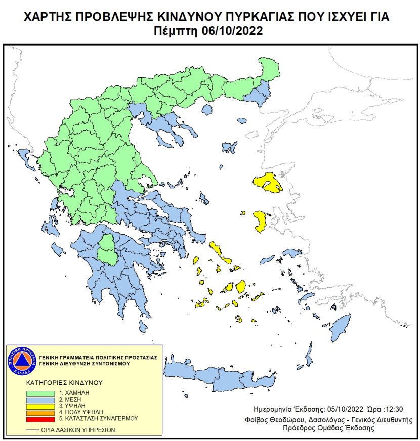 Ημερήσιος Χάρτης Πρόβλεψης Κινδύνου Πυρκαγιάς 05/10/2022