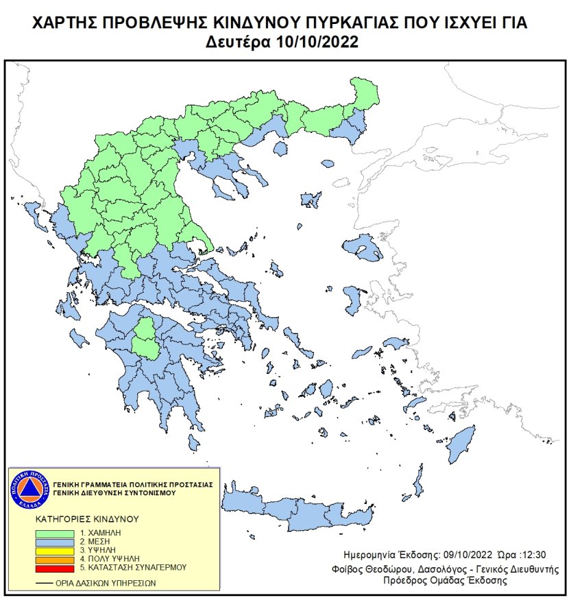 Ημερήσιος Χάρτης Πρόβλεψης Κινδύνου Πυρκαγιάς 10/10/2022