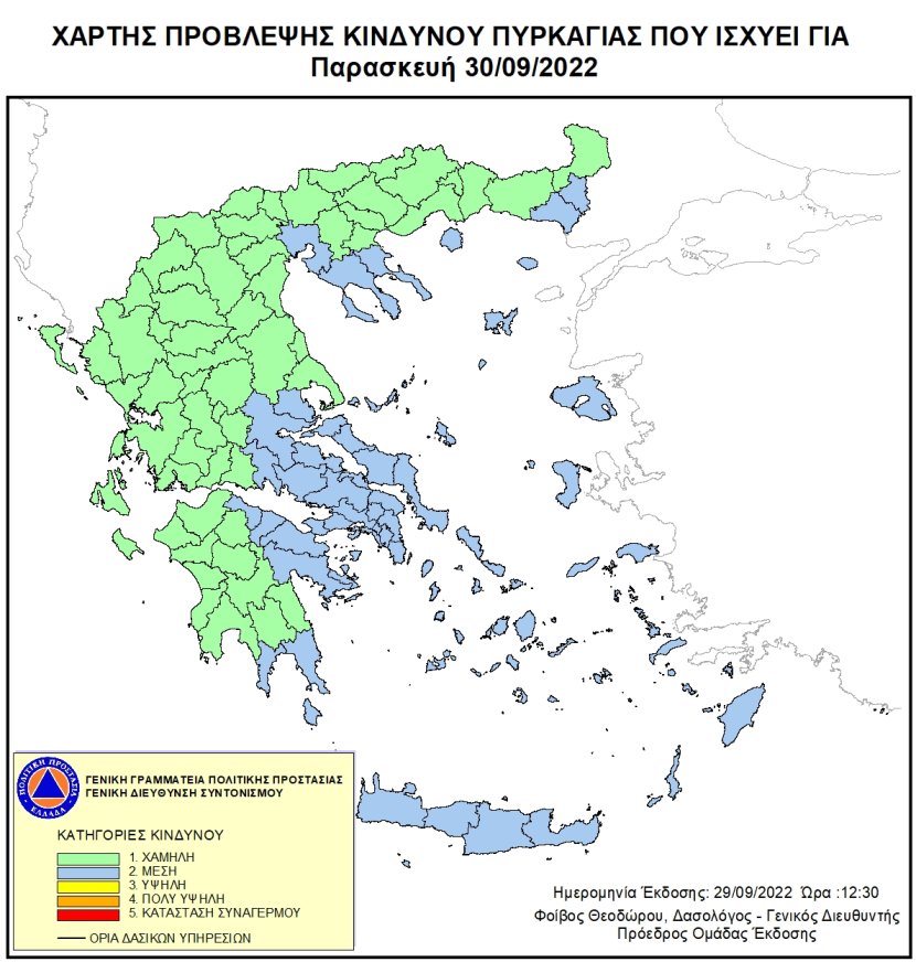 Ημερήσιος Χάρτης Πρόβλεψης Κινδύνου Πυρκαγιάς 30/09/2022