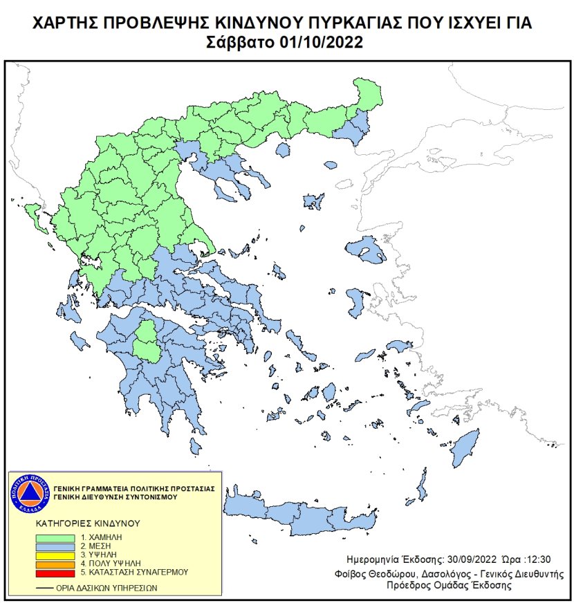 Ημερήσιος Χάρτης Πρόβλεψης Κινδύνου Πυρκαγιάς 01/10/2022