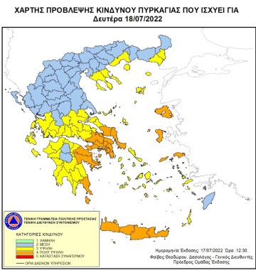Ημερήσιος Χάρτης Πρόβλεψης Κινδύνου Πυρκαγιάς 18/07/2022