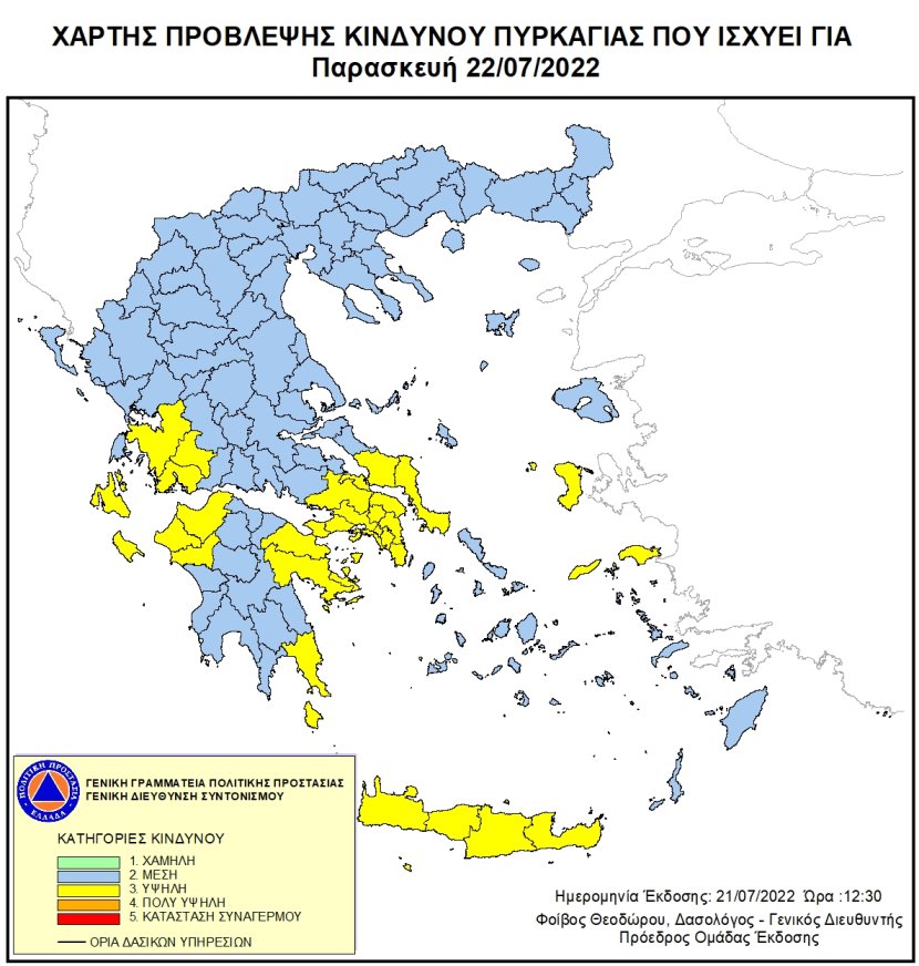 Ημερήσιος Χάρτης Πρόβλεψης Κινδύνου Πυρκαγιάς 22/07/2022