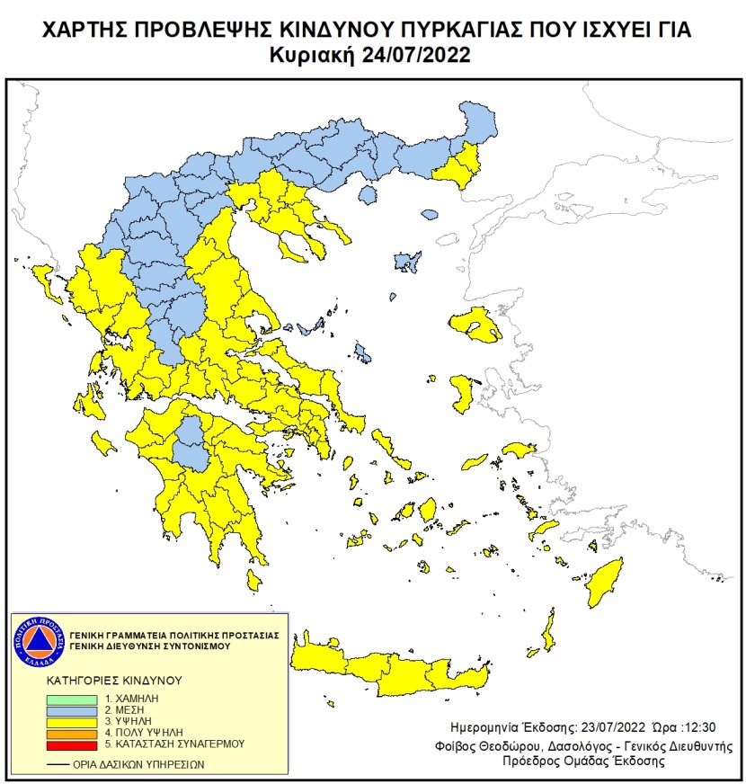 Ημερήσιος Χάρτης Πρόβλεψης Κινδύνου Πυρκαγιάς 24/07/2022