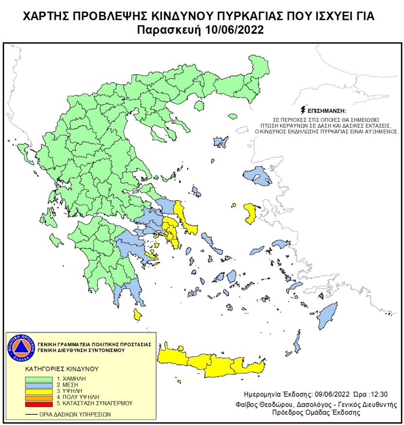 Ημερήσιος Χάρτης Πρόβλεψης Κινδύνου Πυρκαγιάς 10/06/2022