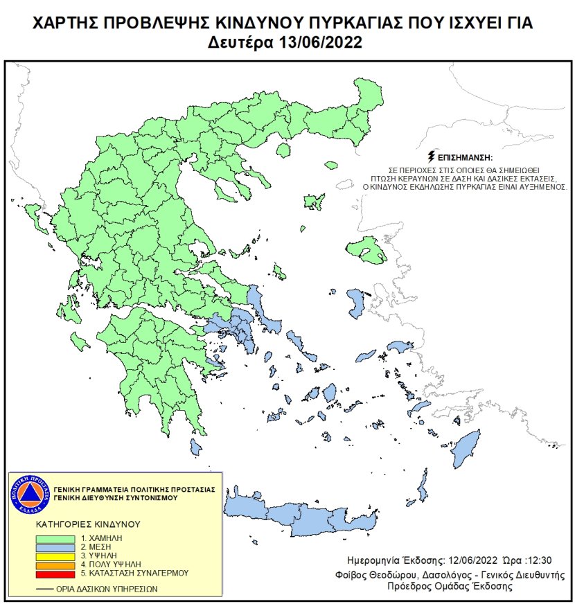 Ημερήσιος Χάρτης Πρόβλεψης Κινδύνου Πυρκαγιάς 12/06/2022