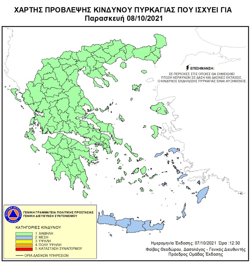 Ημερήσιος Χάρτης Πρόβλεψης Κινδύνου Πυρκαγιάς 08/10/2021