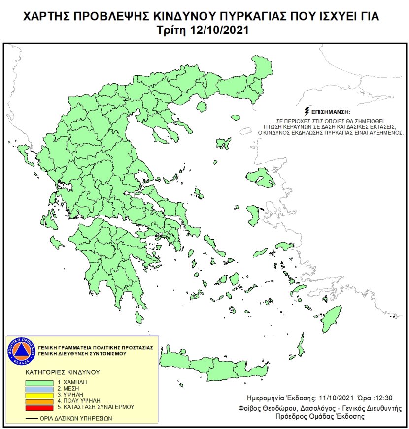 Ημερήσιος Χάρτης Πρόβλεψης Κινδύνου Πυρκαγιάς 12/10/2021