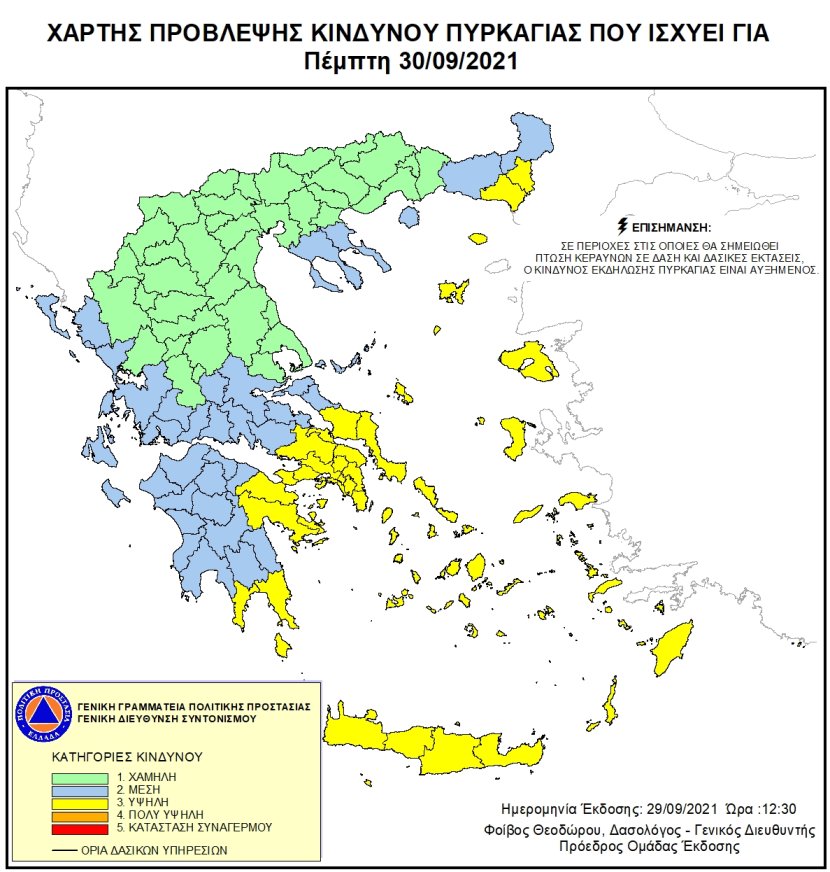 Ημερήσιος Χάρτης Πρόβλεψης Κινδύνου Πυρκαγιάς 30/09/2021