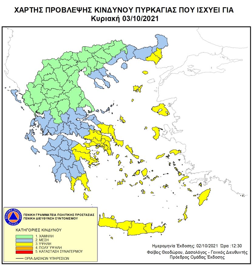 Ημερήσιος Χάρτης Πρόβλεψης Κινδύνου Πυρκαγιάς 03/10/2021
