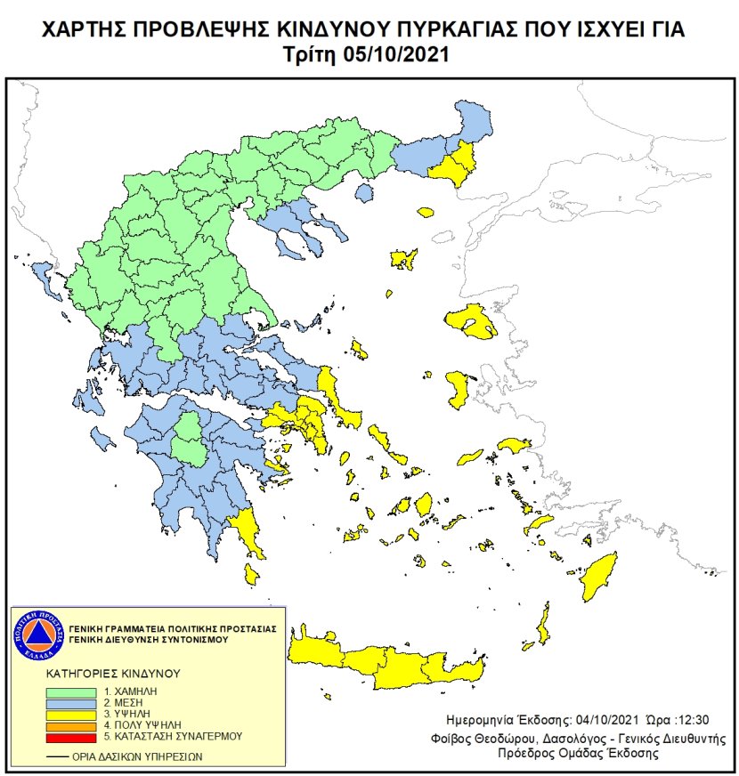 Ημερήσιος Χάρτης Πρόβλεψης Κινδύνου Πυρκαγιάς 05/10/2021