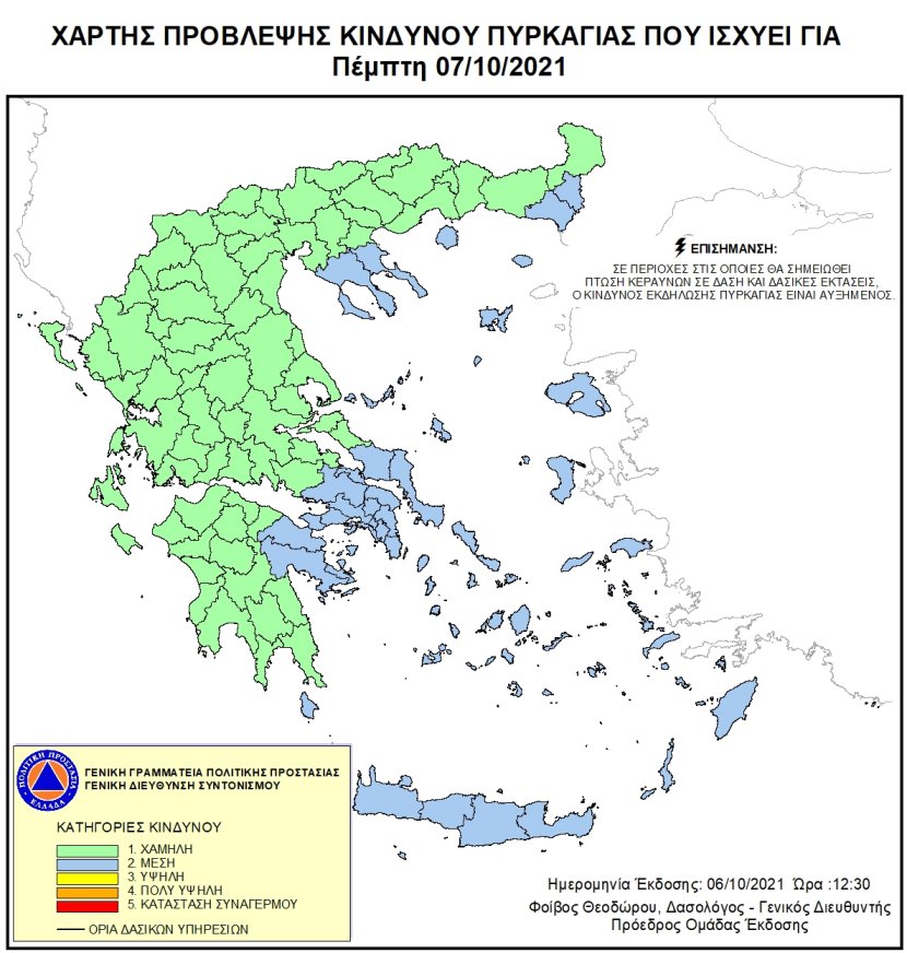 Ημερήσιος Χάρτης Πρόβλεψης Κινδύνου Πυρκαγιάς 07/10/2021