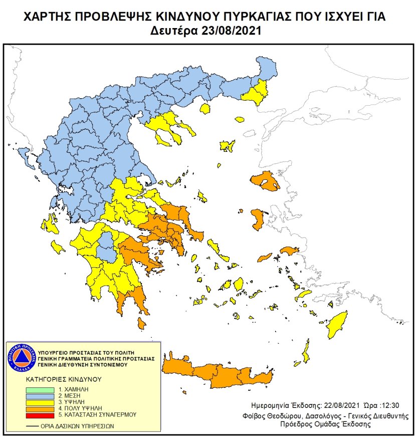 Ημερήσιος Χάρτης Πρόβλεψης Κινδύνου Πυρκαγιάς 22/08/2021