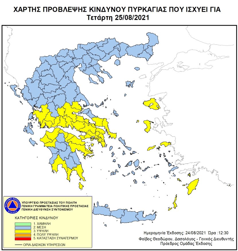 Ημερήσιος Χάρτης Πρόβλεψης Κινδύνου Πυρκαγιάς 25/08/2021