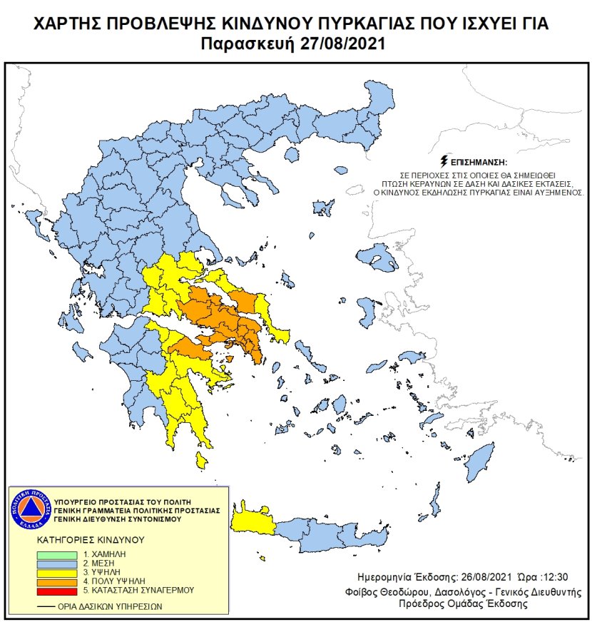 Ημερήσιος Χάρτης Πρόβλεψης Κινδύνου Πυρκαγιάς 27/08/2021