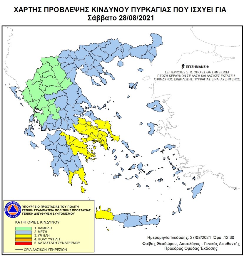 Ημερήσιος Χάρτης Πρόβλεψης Κινδύνου Πυρκαγιάς 28/08/2021