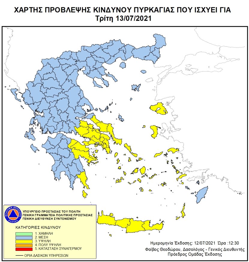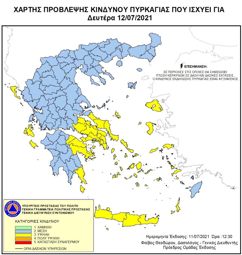 Ημερήσιος Χάρτης Πρόβλεψης Κινδύνου Πυρκαγιάς 12/07/2021