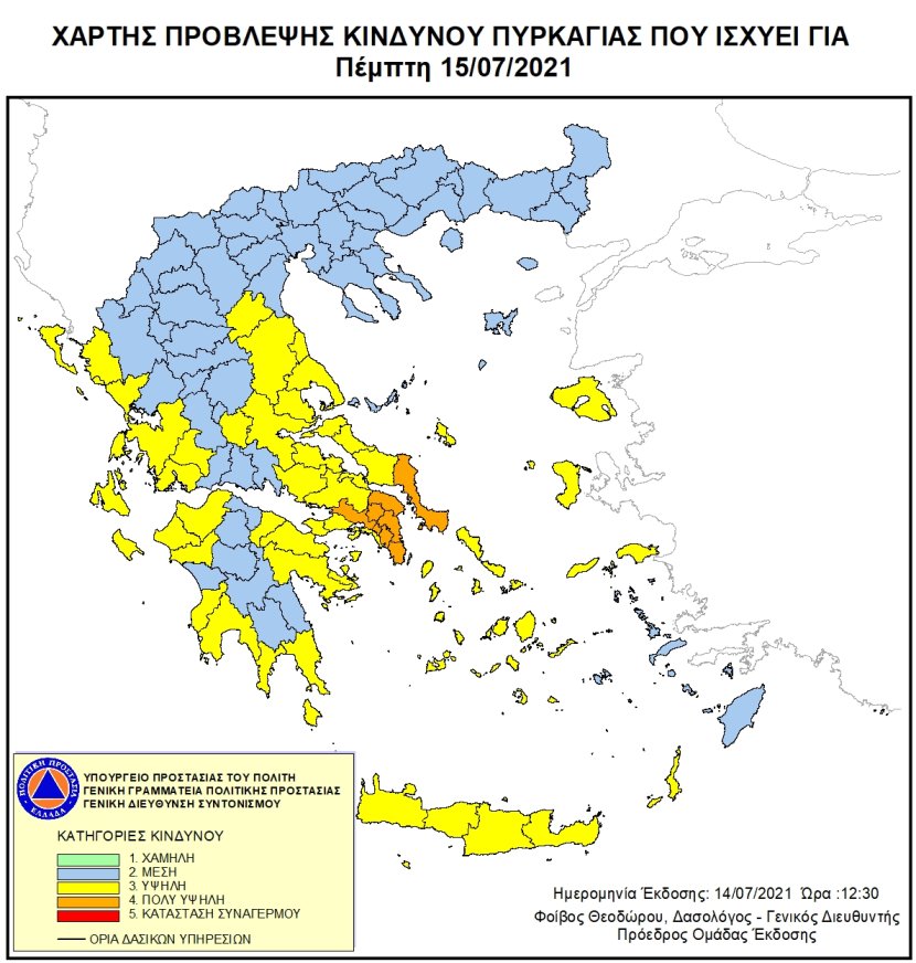 Ημερήσιος Χάρτης Πρόβλεψης Κινδύνου Πυρκαγιάς 15/07/2021