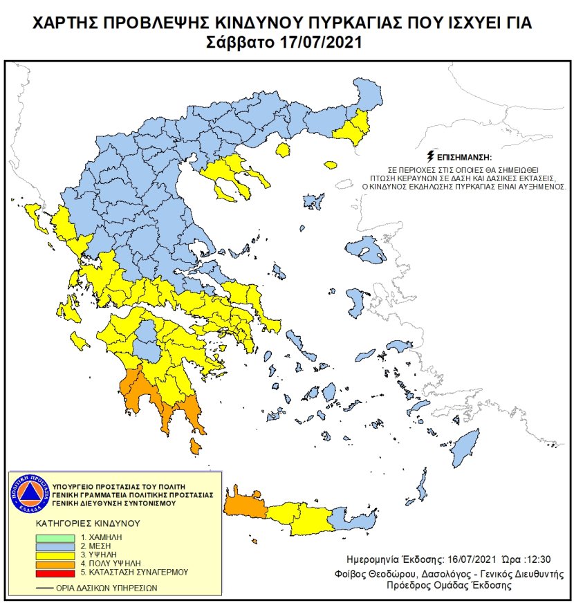 Ημερήσιος Χάρτης Πρόβλεψης Κινδύνου Πυρκαγιάς 17/07/2021