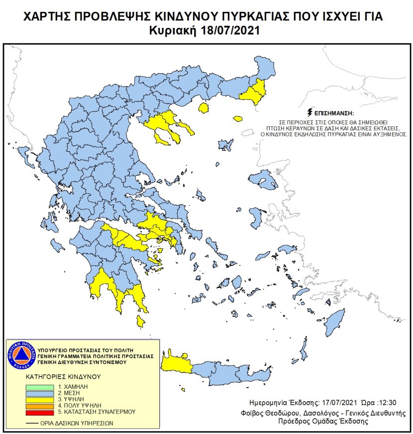 Ημερήσιος Χάρτης Πρόβλεψης Κινδύνου Πυρκαγιάς 18/07/2021