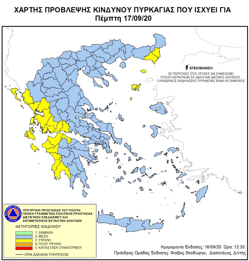 Ημερήσιος Χάρτης Πρόβλεψης Κινδύνου Πυρκαγιάς 17/09/2020