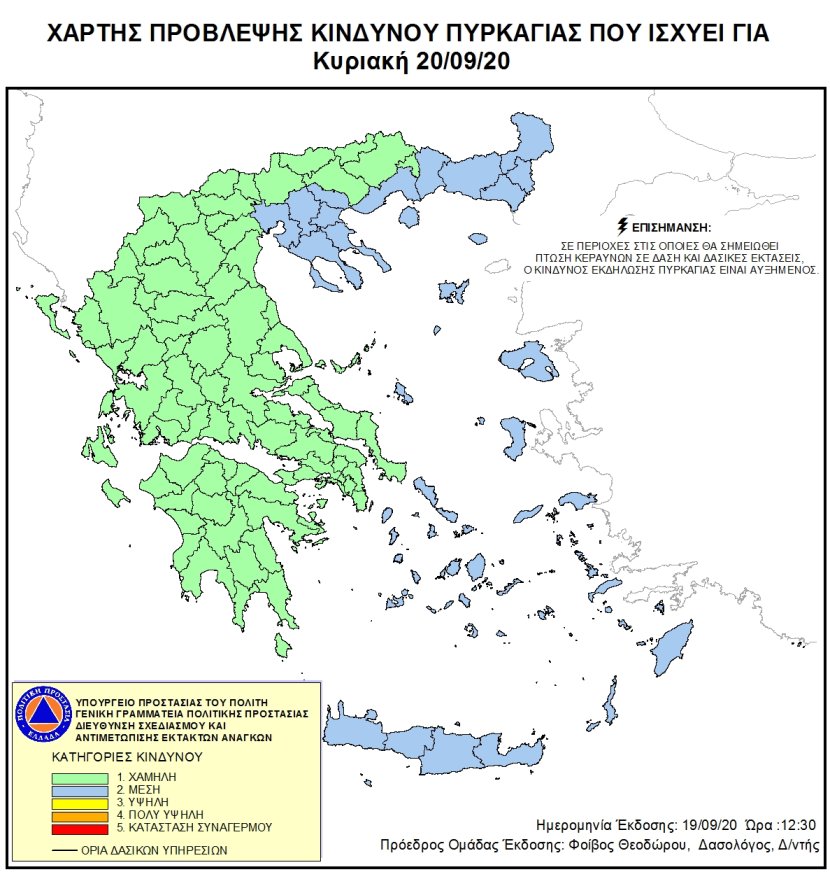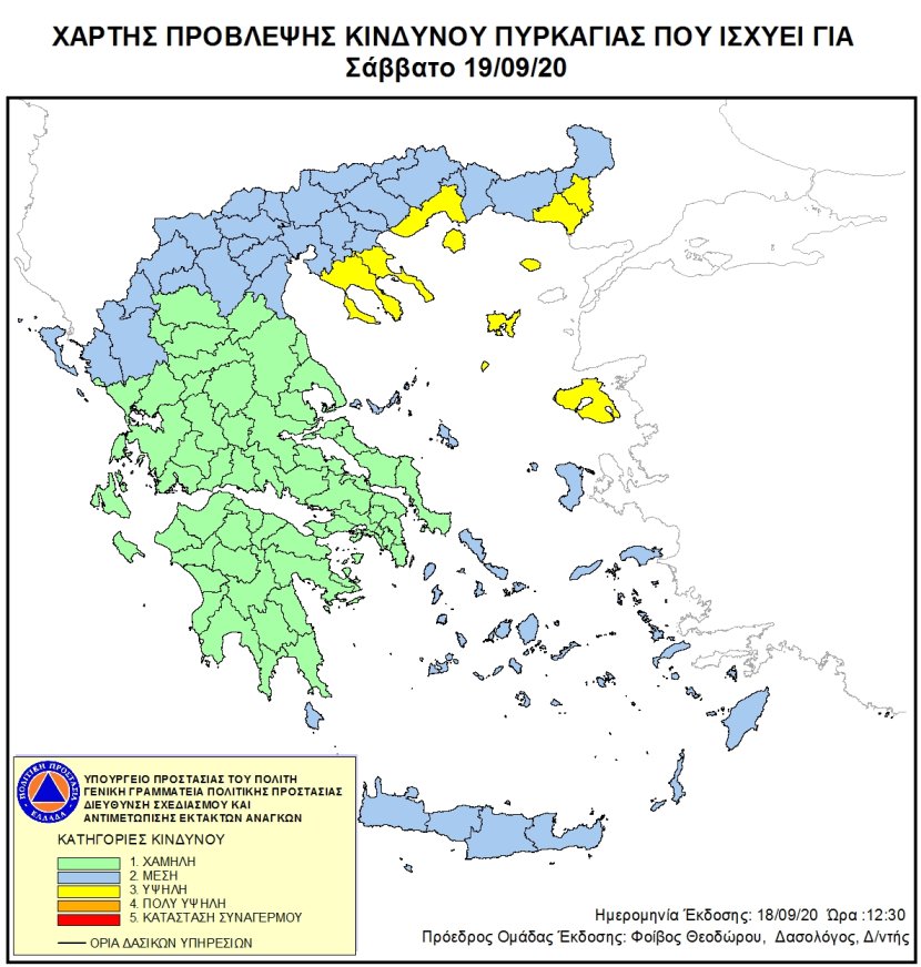 Ημερήσιος Χάρτης Πρόβλεψης Κινδύνου Πυρκαγιάς 19/09/2020
