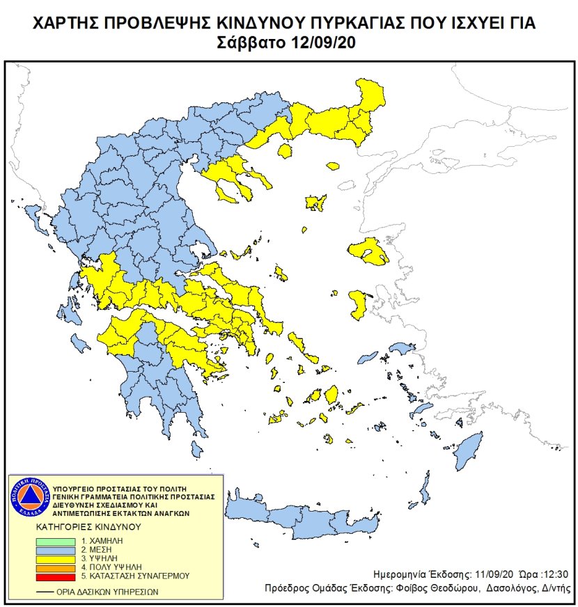 Ημερήσιος Χάρτης Πρόβλεψης Κινδύνου Πυρκαγιάς 12/09/2020