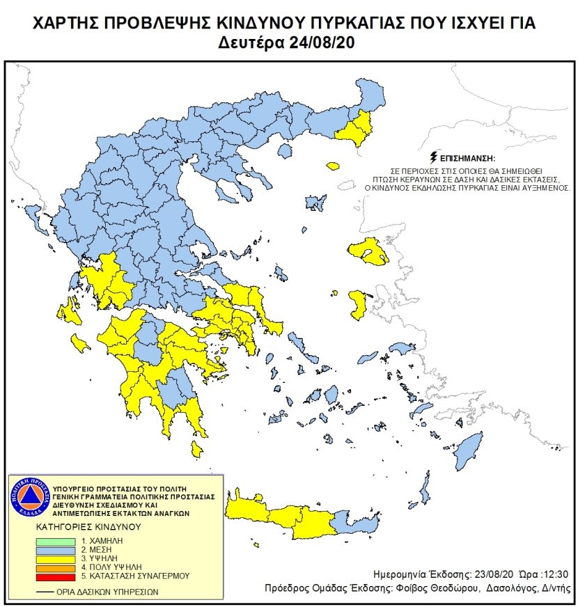 Ημερήσιος Χάρτης Πρόβλεψης Κινδύνου Πυρκαγιάς 24/08/2020