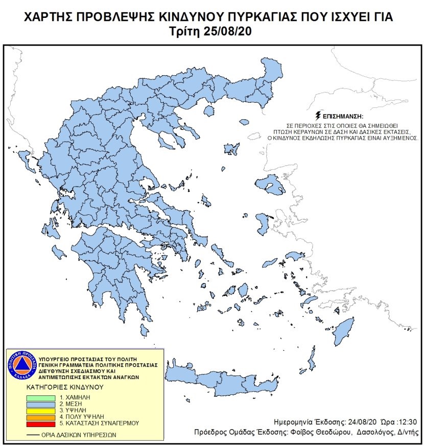 Ημερήσιος Χάρτης Πρόβλεψης Κινδύνου Πυρκαγιάς 25/08/2020
