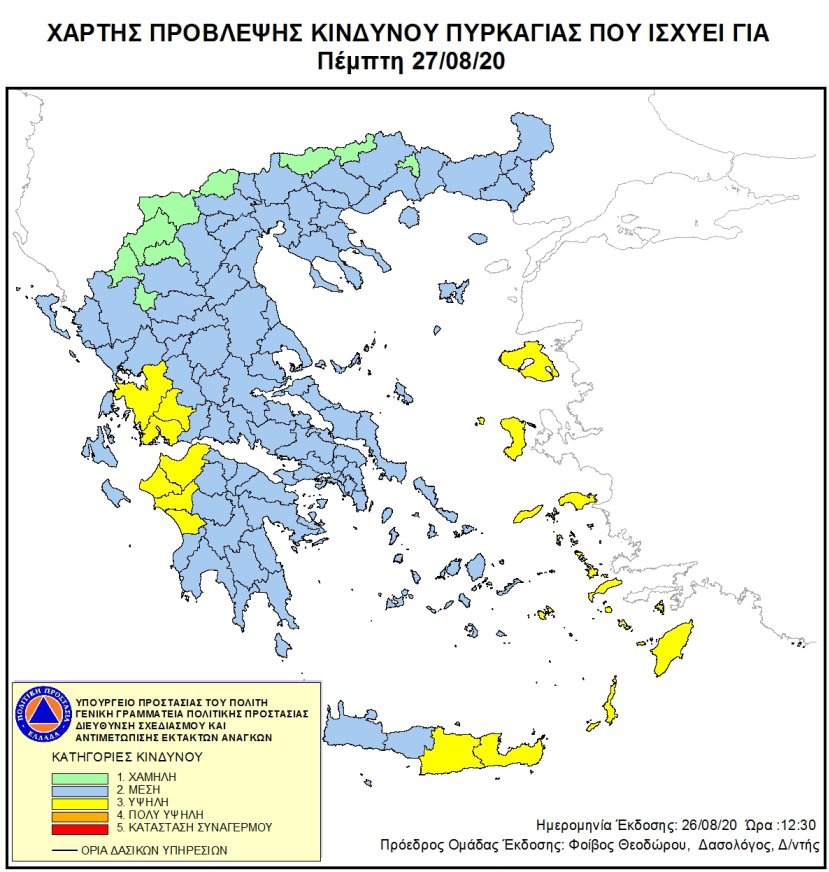 Ημερήσιος Χάρτης Πρόβλεψης Κινδύνου Πυρκαγιάς 27/08/2020