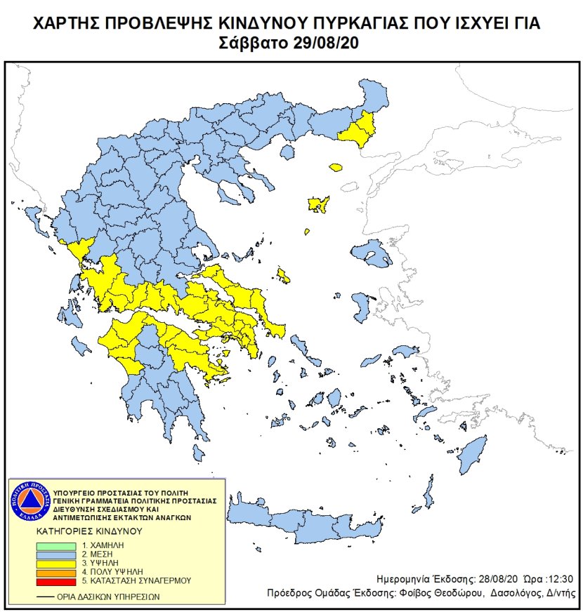 Ημερήσιος Χάρτης Πρόβλεψης Κινδύνου Πυρκαγιάς 29/08/2020