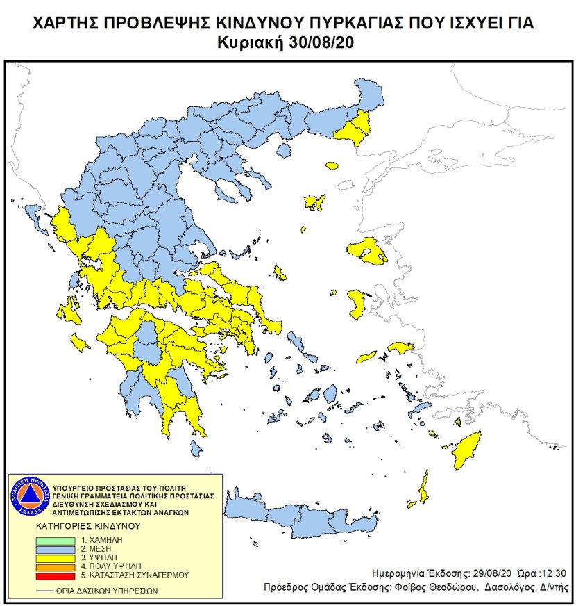 Ημερήσιος Χάρτης Πρόβλεψης Κινδύνου Πυρκαγιάς 30/08/2020