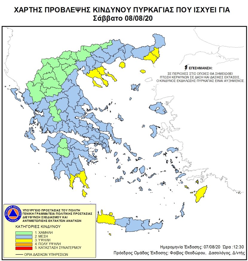 Ημερήσιος Χάρτης Πρόβλεψης Κινδύνου Πυρκαγιάς 08/08/2020