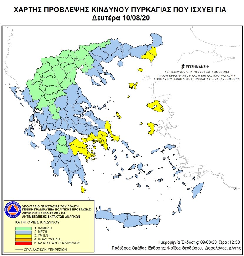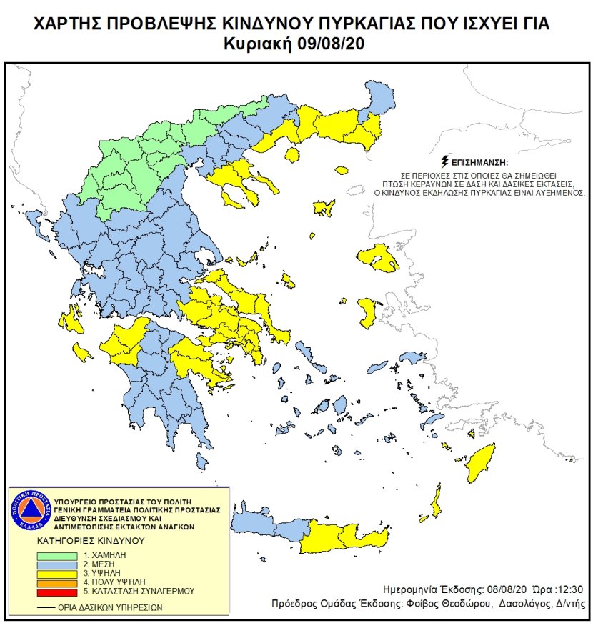 Ημερήσιος Χάρτης Πρόβλεψης Κινδύνου Πυρκαγιάς 09/08/2020