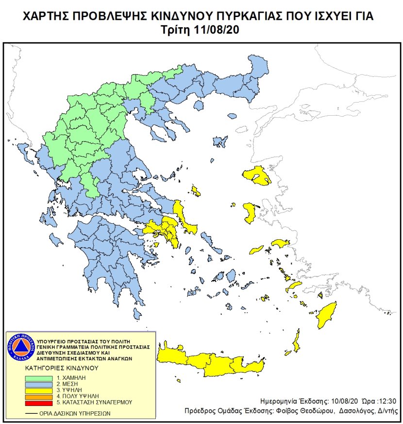 Ημερήσιος Χάρτης Πρόβλεψης Κινδύνου Πυρκαγιάς 11/08/2020