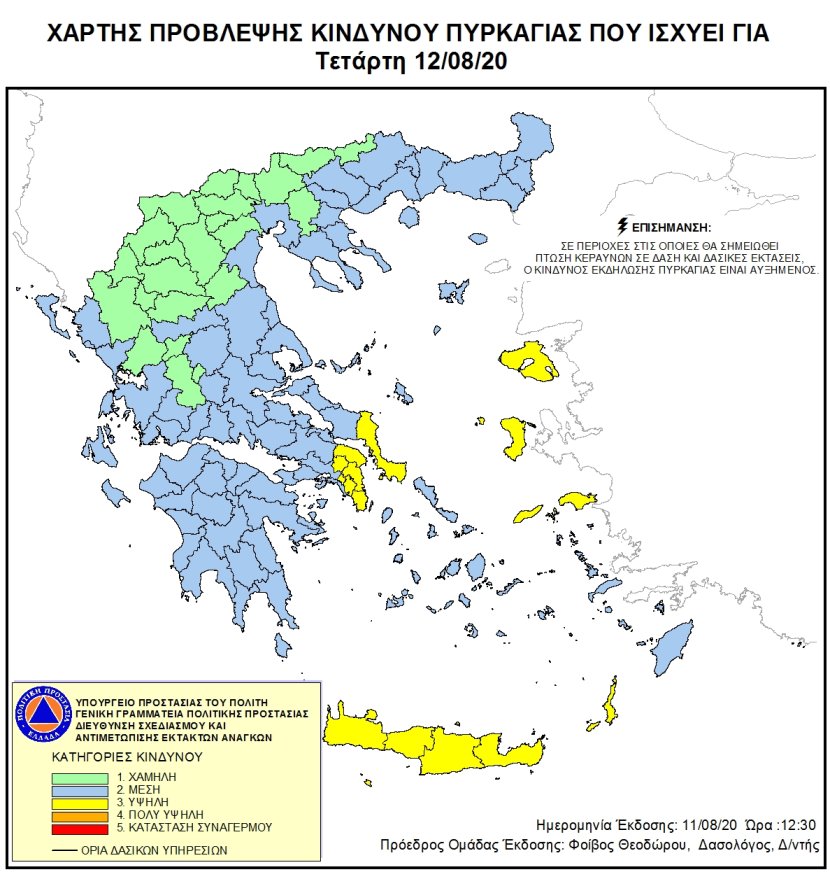 Ημερήσιος Χάρτης Πρόβλεψης Κινδύνου Πυρκαγιάς 12/08/2020
