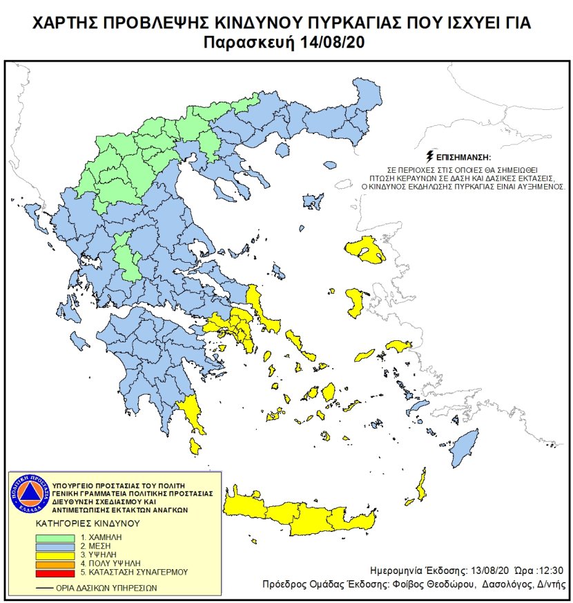 Ημερήσιος Χάρτης Πρόβλεψης Κινδύνου Πυρκαγιάς 14/08/2020