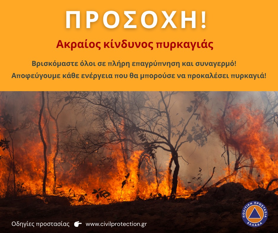 Πολύ υψηλός κίνδυνος πυρκαγιάς (κατηγορία κινδύνου 4) για αύριο, Πέμπτη 5 Αυγούστου 2021