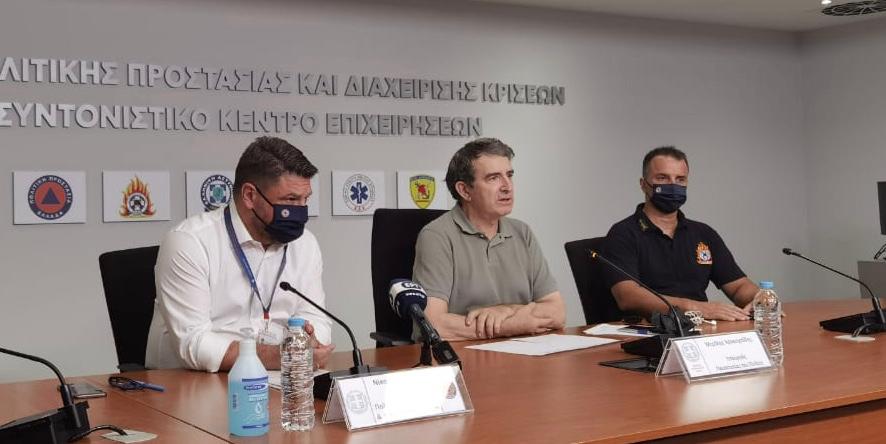 Έκτακτη ενημέρωση από τον Υπουργό Προστασίας του Πολίτη, Μιχάλη Χρυσοχοΐδη και τον Υφυπουργό Πολιτικής Προστασίας και Διαχείρισης Κρίσεων Νίκο Χαρδαλιά για τη σημερινή πυρκαγιά στις περιοχές Σταμάτας, Ροδόπολης και Διονύσου Αττικής