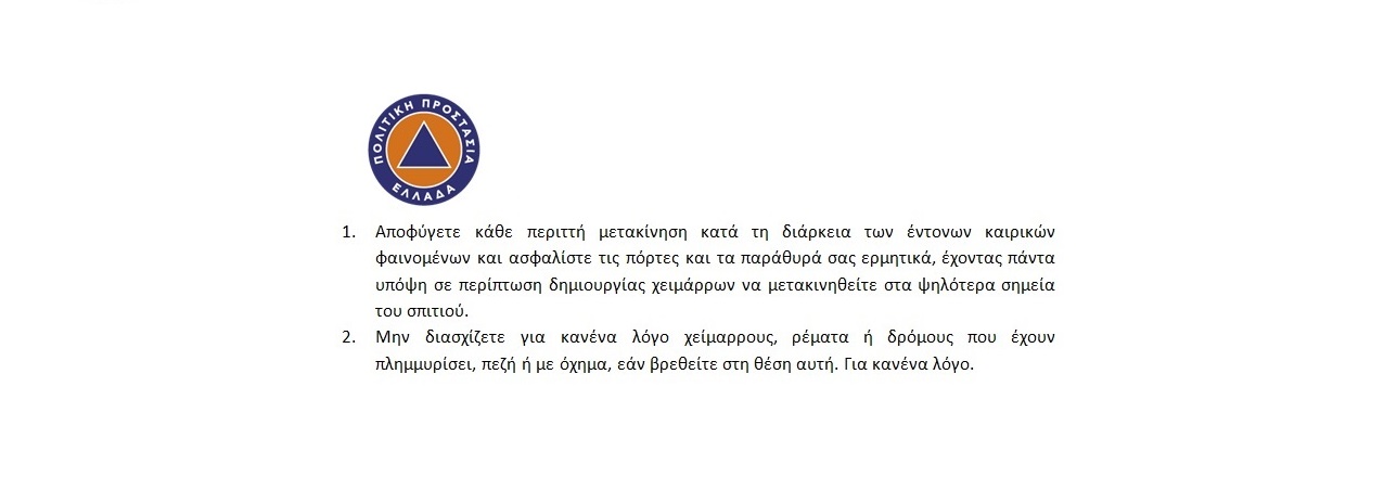 Έκτακτη ανακοίνωση Γενικού Γραμματέα Πολιτικής Προστασίας, B. Παπαγεωργίου, για επερχόμενα επικίνδυνα καιρικά φαινόμενα - Βασικές Οδηγίες Προστασίας