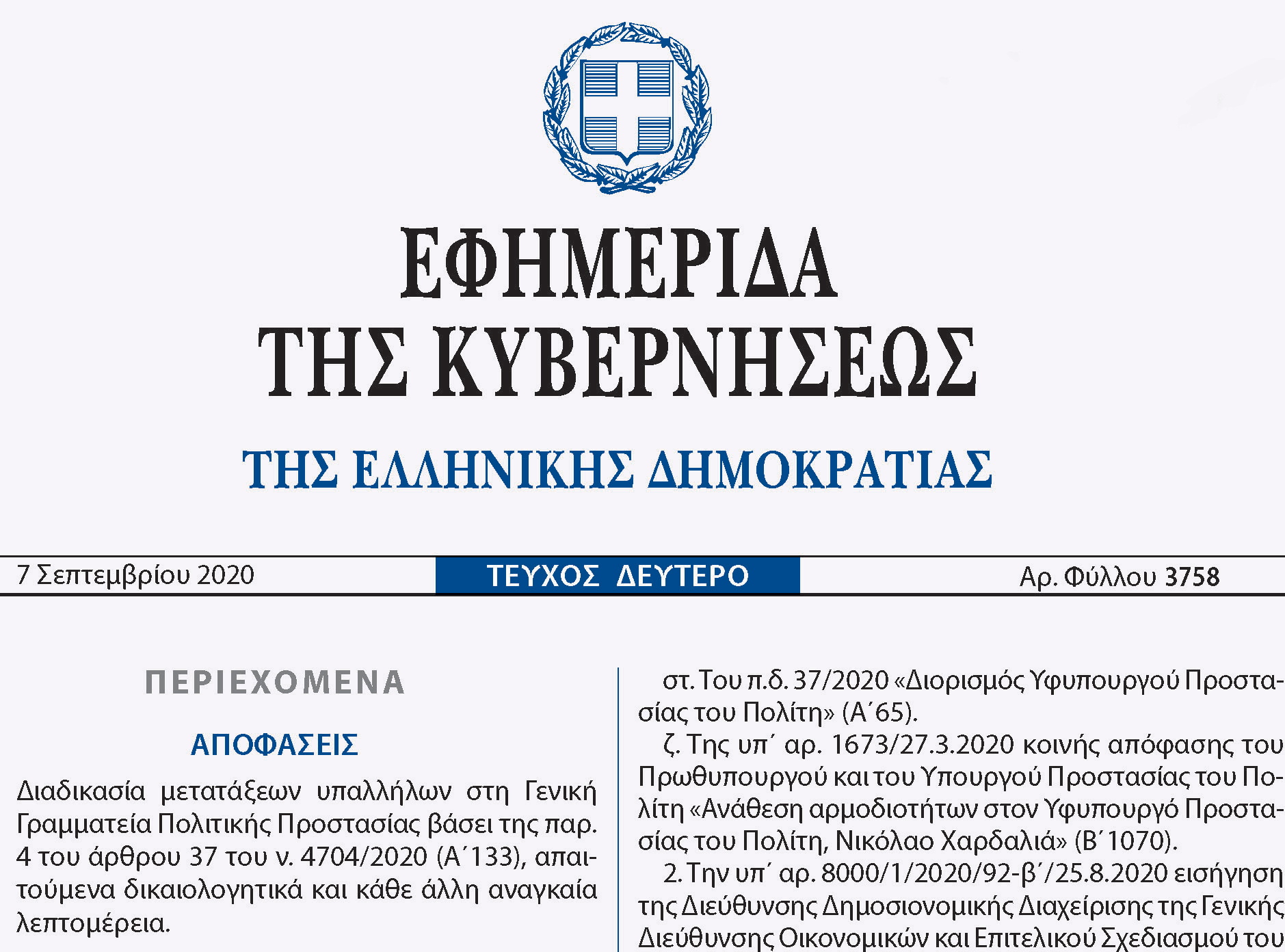 Δημοσίευση ΚΥΑ καθορισμού της διαδικασίας μετατάξεων υπαλλήλων στη Γενική Γραμματεία Πολιτικής Προστασίας