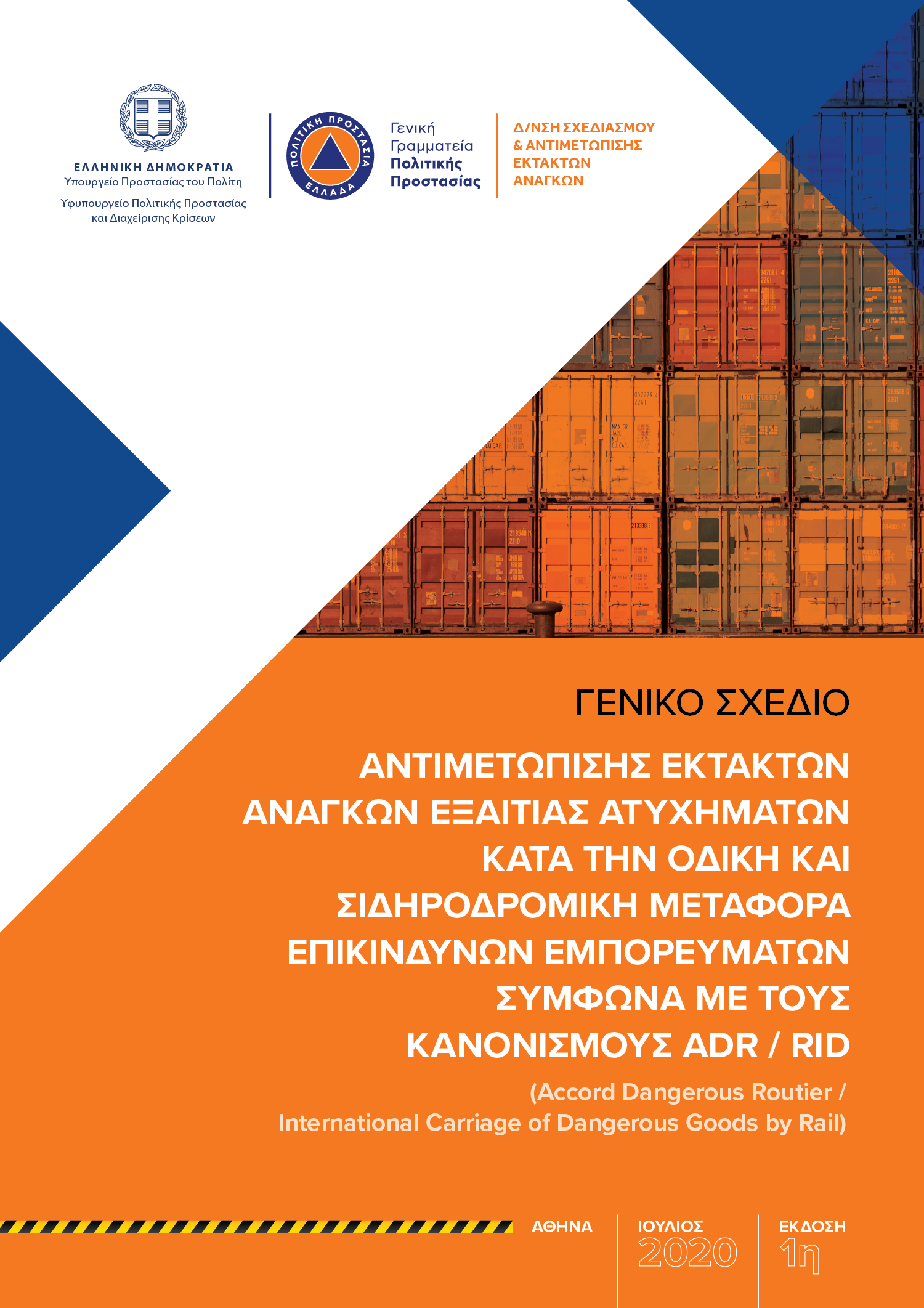 1η Έκδοση του Γενικού Σχεδίου Αντιμετώπισης Εκτάκτων Αναγκών εξαιτίας Ατυχημάτων κατά την Οδική και Σιδηροδρομική Μεταφορά Επικινδύνων Εμπορευμάτων σύμφωνα με τους Κανονισμούς ADR/RID